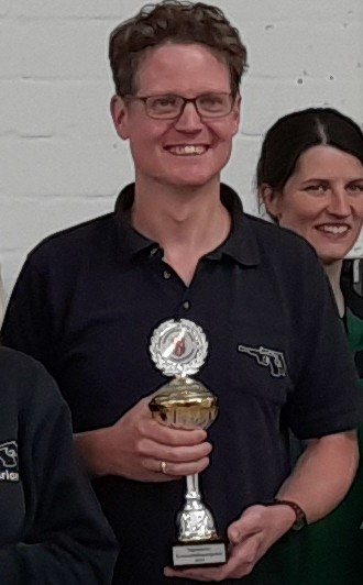 Als Abschluß der Siegerehrung gab es dann für Jascha Schulz noch einen Pokal als bester Einzelschütz des Finales. Re erreichte mit seinen 374 Ringen im Wettbewerb Luftpistole Herren II hierfür 155,172 von maximal 200 möglichen Punkten.