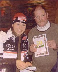 Wo Andere draußen bleiben mussten, ging es für die Rotenburger Reisegruppe noch weiter. Sie kamen direkt an die Stars (oben links Magdalena Neuner, rechts Kati Wilhelm) heran. Bei dieser Gelegenheit übergab Norbert Jörs die Chronik des Kreisverbandes und erhielt im Gegenzug natürlich auch die begehrten Autogramme der Stars.