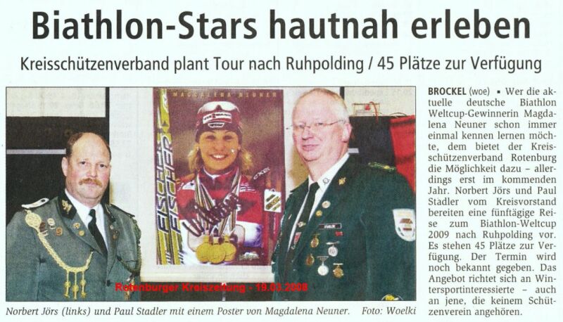 Landkreis Rotenburg. (r/gm). Zum Biathlon-Weltcup nach Ruhpolding brach jetzt eine Reisegruppe des Kreisschützenverbandes auf. Unter der Leitung des Referenten für Breitensport, Norbert Jörs, erlebten die Schützen