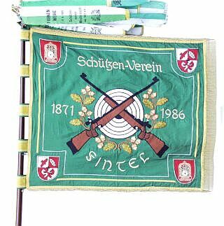 Der Schützenverein besaß während der 135 Jahre seines Bestehens zwei Fahnen. Die im Jahre 1872 gekaufte alte Fahne begleitete von da an bis 1986 all die Schützenumzüge. Dem nicht immer guten Wetter bei den Umzügen ausgesetzt, war diese Fahne schon einmal zu überholen und neu zu imprägnieren. Daraufhin erwarb der Verein 1986 eine neue Fahne. Die frühere Fahne stellt er in der Schützenhalle in einem Schaukasten aus.