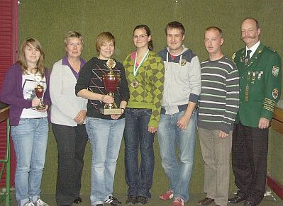 Der Wettkampfleiter Andreas Krause bedankte sich bei den Teilnehmer für ihre guten Leistungen, übergab den Kreisschießsportpokal an den SV Bartelsdorf, der mit folgenden Schützen bzw. Schützinnen angetreten war: Nadine Wahlers, Elke Hollmann, Tina Ehlers, Phillip Göttert und Thomas Hollmann.Anschließend wurde die Einzelkampfsiegerin Yvonne Joost aus dem SV Süderwalsede mit einer Medaille für den Ersten Platz geehrt.