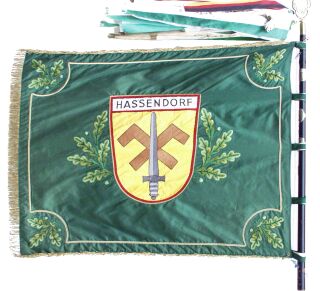 Es ging rasch aufwärts mit Hassendorfs schimmernder Wehr. Bereits nach fünf Jahren, also 1929, waren sämtliche Uniformen angeschafft. Die erste Fahne folgte zwei Jahre später, sie war die Spende eines Vereins alter Sottrumer, der seinen Sitz in den USA hatte! Die heutige Fahne wurde 1965 angeschafft, Fahnenweihe war am 25. Juli des Jahres.