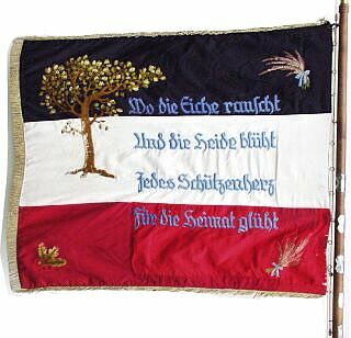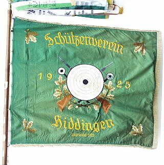 Die erste, noch vorhandene Vereinsfahne wurde am 10. Juni 1925 geweiht. Da diese historische Fahne inzwischen stark abgenutzt war, wurde in 1979 die Fahne in mühsamer Kleinarbeit von zwei Schützendamen restauriert und erstrahlt nunmehr wieder in alter Schönheit.
