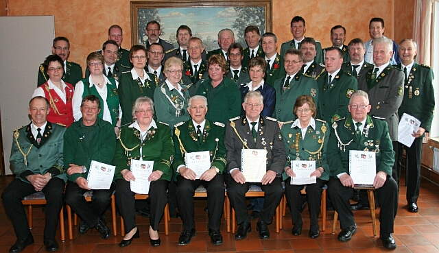 Folgende Schützen erhielten die silberne Verdienstnadel des NSSV: Gerd Corde (Bötersen-Höperhöfen), Paul Jaletzky (Borchel), Friedhelm Wichern (Bothel), Rainer Riebesehl (Fintel), Ulrich