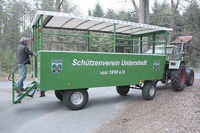 präsentierte er dem Kreisvorstand um Helmut Bellmann den Platz, auf dem die Vereine antreten werden. Gleich daneben wird das Zelt aufgebaut werden. Auf einem vereinseigenen Anhänger fuhren die Schützen den Marschweg