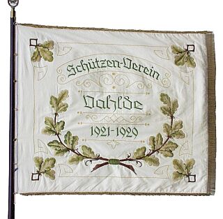Anfang 1929 beschlossen die Schützen, eine Fahne zu erwerben. Diese wurde am 12. Mai 1929 feierlich geweiht. Im Mai 1931 wurde das zehnjährige Jubiläumsfest mit der Einweihung des neuen Schießstandes verbunden. Die neue Schießgelegenheit entstand auf dem Grundstück Behrens Nr. 4 (Brunges) am Negerhopsweg. Ab 1936 sollte neben dem Schützenfest auch ein Erntefest stattfi nden, und zwar im Herbst. Der Vizekönig wurde jeweils Erntemeister. Im ersten Jahr war es Otto Tödter. Bei ihm wurde die Erntekrone abgeholt.