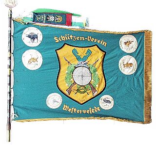 Auf dem Schützenfest 1951 wurde die neu angeschaffte Fahne geweiht. Die Fahnenspitze schmiedeten die Schützenbrüder Adolf Thies und Emil Westphal aus Kartuschen des Zweiten Weltkrieges. Das Fahnentuch bestickten kunstvoll die Schwestern Frieda und Else Dittmer. Diese Fahne ist auch heute noch der ganze Stolz des Vereins.