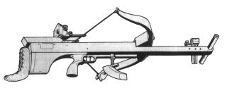 Waffe: Armbrust mit mechanischem Abzug, einem Gesamtgewicht einschließlich Zubehörs bis zu 10 kg, einer maximalen Länge der Visierlänge von 720 mm, Bogenbreite bei aufgezogener Sehne (kein Metall) bis zu 90 cm und einer Spannkraft bis zu 43 kg.
