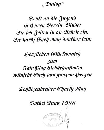 Im Jahre 1998 hat der Schützenbruder Gerhard (Charly) May aus Bothel den