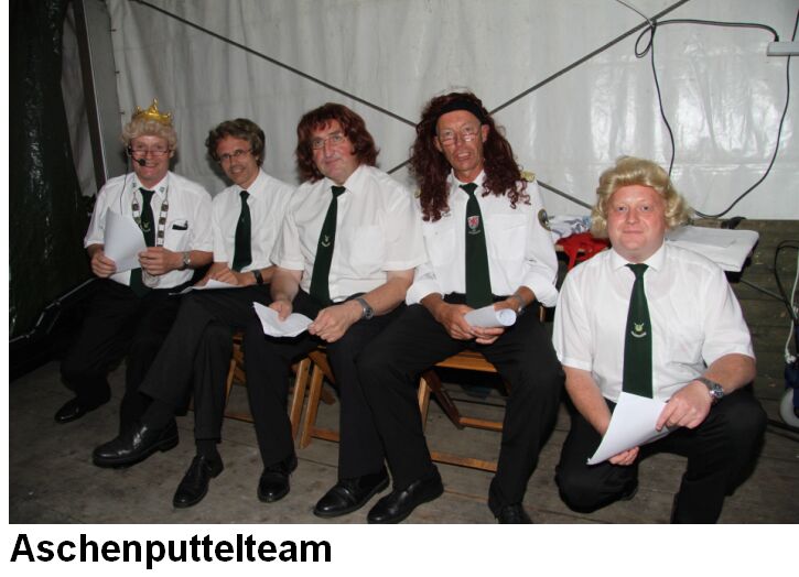 In diesem Jahr lud die Gemeinde Hassendorf zum diesjährigen Kreisschützenfest des Altkreises Rotenburg/Wümme ein. Mit dem Kommersabend begann der offizielle Teil dieses besonderen Festes. Hier haben sich nicht nur die Schützinnen und Schützen etwas ganz besonderes einfallen lassen, um einen unterhaltsamen Abend zu gestalten. Die gesamte Dorfbevölkerung hat keine Mühe gescheut, dass für jeden etwas unterhaltsames dabei ist. Sogar die Kids haben fleißig Lieder einstudiert, die das Publikum erstaunen ließ. Die gelernte Jongleurin Tamani überzeugte mit ihrer flotten gekonnten Darbietung, dass ein jeder Mühe hatte den kleinen Bällen zu folgen. Als die Damen vom Schützenverein ihren Bottermelktango vorführten, blieb bei den Anwesenden vor Lachen kaum ein Auge trocken. Mit Witz, Charme und Humor leitete Jens Aukamp das Abendprogramm. Als absoluter Knaller erwies sich das Märchenstück „Aschenputtel“, bei dem selbst der Präsident Helmut Bellmann in die Rolle der bösen Stiefmutter schlüpfen durfte. Das Aschenputtelteam wurde schließlich von folgenden Akteuren gestellt (Bild von links): 1. Vorsitzende SV HassendorfHinrich Buthmann, Landrat Herrmann Luttmann, Bürgermeister Klaus Dreyer, Kreispräsident Helmut Bellmann und Schützenbruder vom SV Hassendorf Holger Schoen.