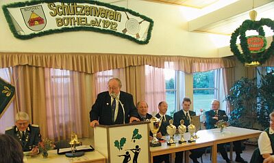 Vorstandstisch “Fachverband Schießsport” vom Kreis- Sportbund mit dem Vorsitzenden Frits Hooijberg (Zeven) bei der Siegerehrung im Jahre 2003 in Bothel.