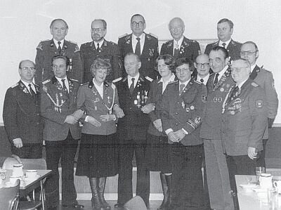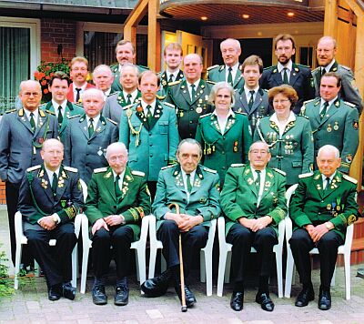 stehend von links: Wulf Bischof, Jürgen Hein, Bernd Lühning, Johann Heidtmann, Heinz Ehlers, Bernd Johannmeyer, Werner Thies, Helmut Bellmann, Friedhelm Bösch, Wilhelm Wellmann, Ursula Pegesa, Ewald Gerken, Sven Cordes, Monika Cordes, Christian Schenk, Gerhard Lühning, Klaus Meinke